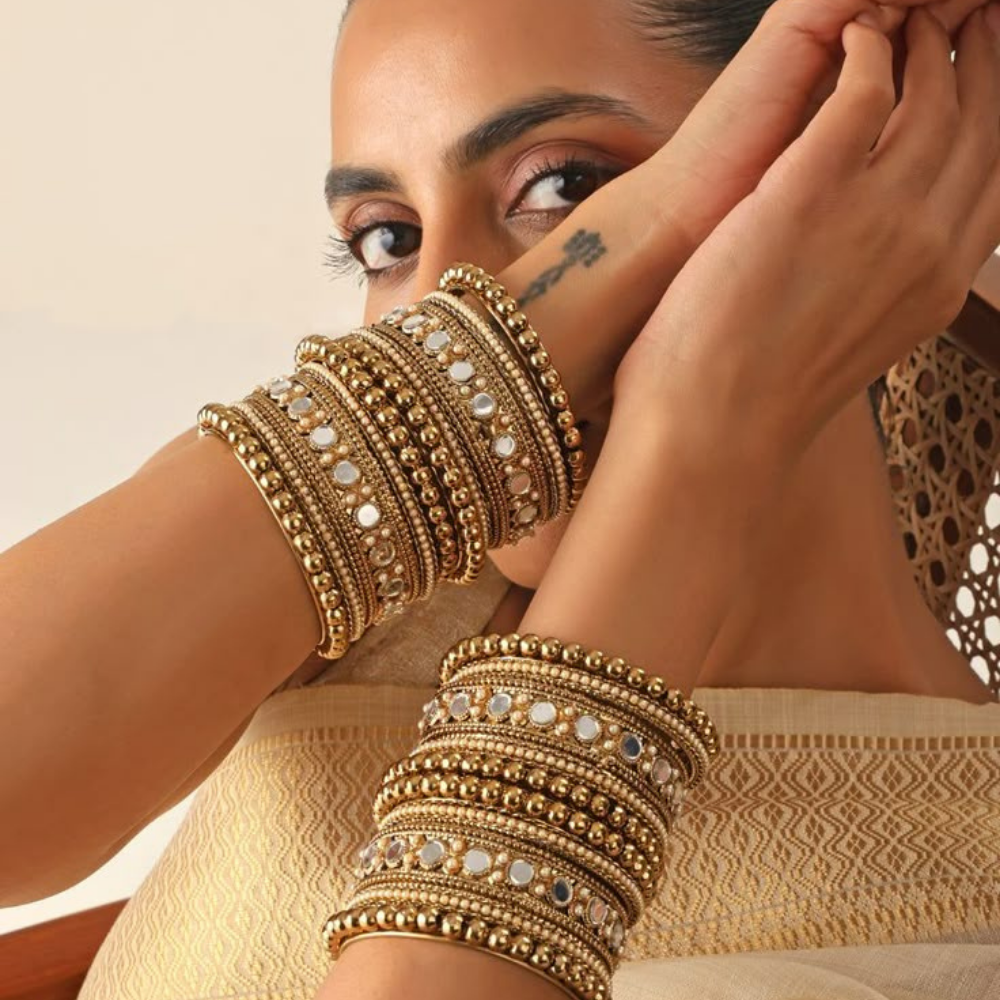 In India, jewelry is a promise. Gold bangles and layered necklaces fill weddings with light, each piece symbolising devotion, eternity, and the bond between families. These ornaments are more than beauty. They are memory and lineage, passed from mother to daughter and worn as a symbol of lasting love.