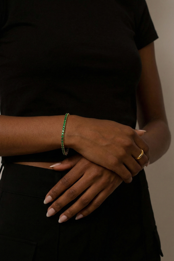 Classic sparkle with modern ease, the Elm Tennis Bracelet adds clarity to the wrist. A refined piece that never feels out of place.