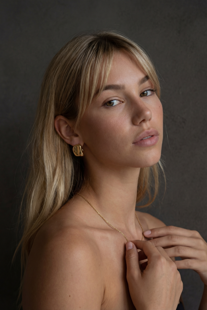 The Horizon Hoops balance clean lines with smooth curvature, reflecting the calm meeting point of sky and sea. Modern and understated, they bring quiet confidence to daily wear.
