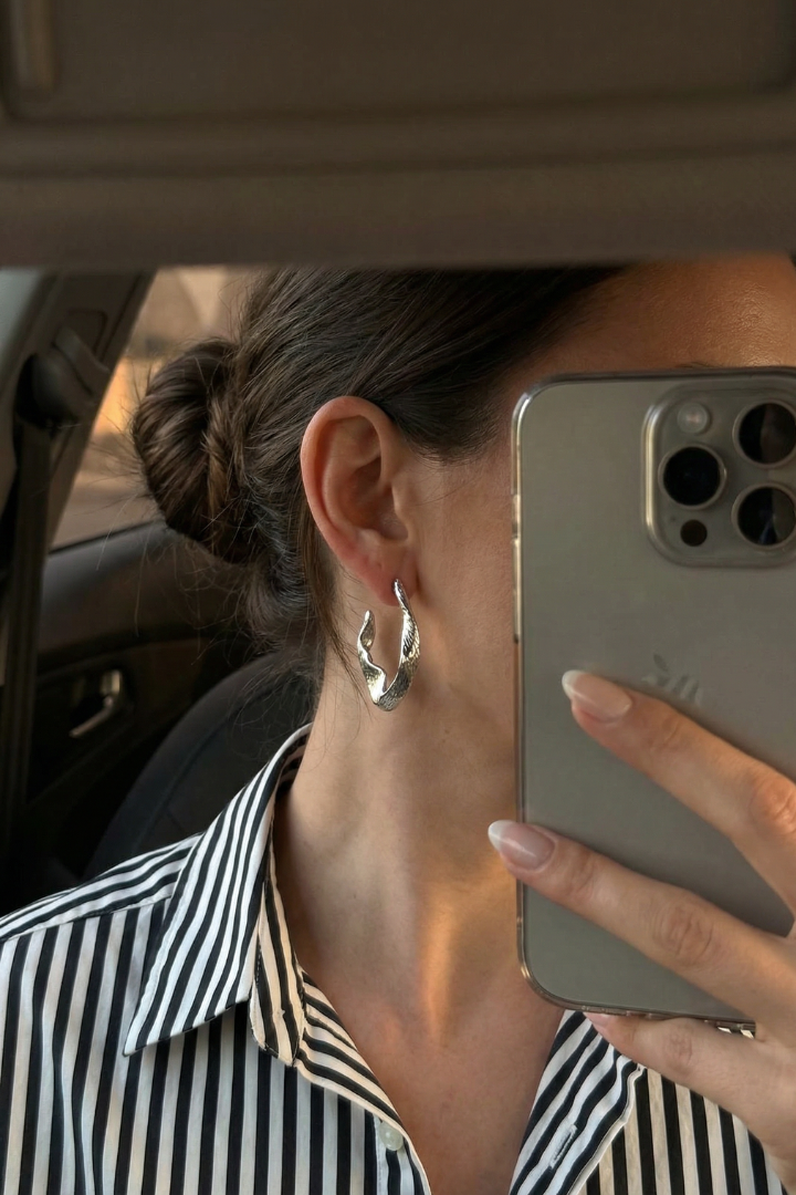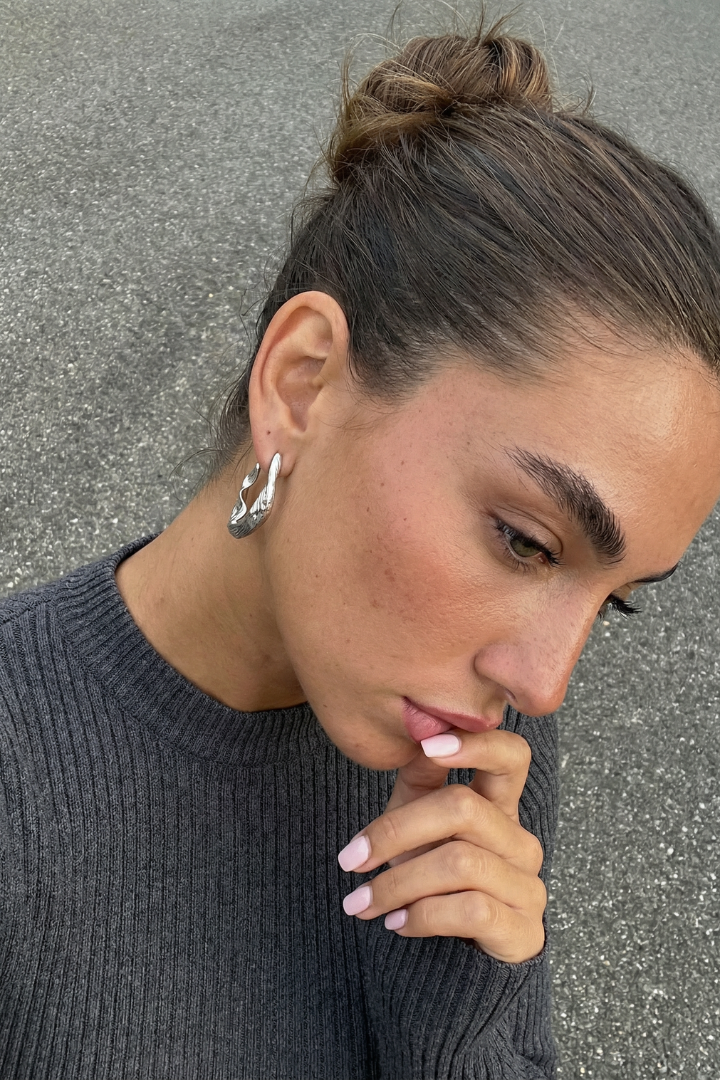 Architectural in design, the Sculpt Hoops are clean and striking. A modern hoop that frames the face with intention.