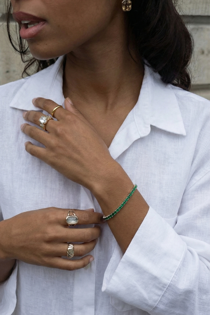 Classic sparkle with modern ease, the Elm Tennis Bracelet adds clarity to the wrist. A refined piece that never feels out of place.