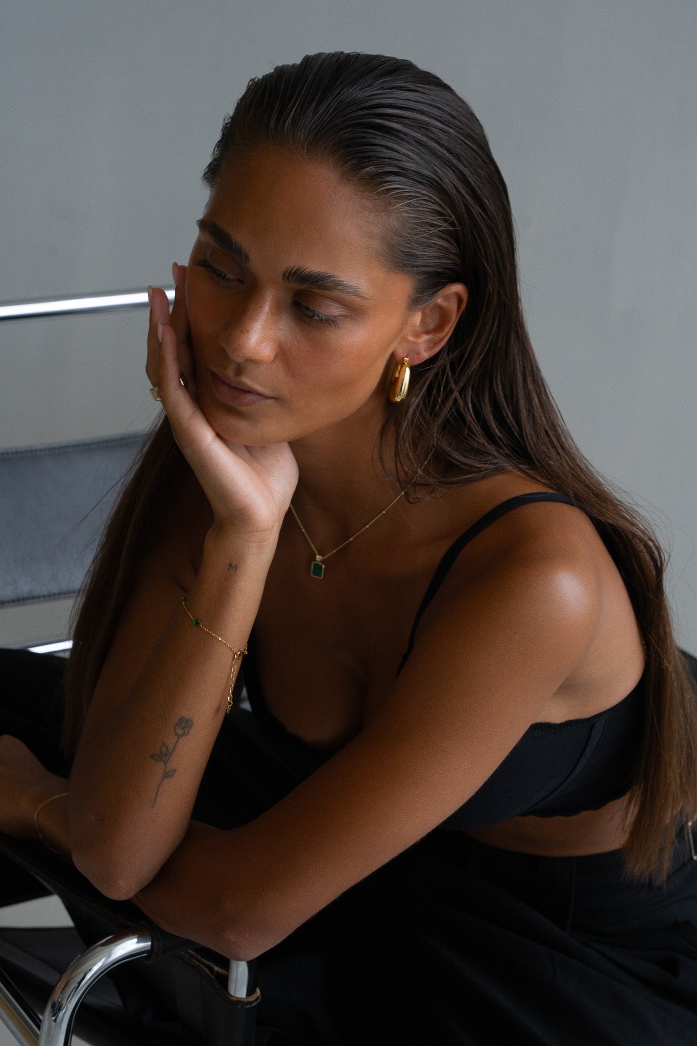 Our jewelry is crafted from high-quality stainless steel with PVD plating. Gold pieces are finished with 18k PVD gold plating for a long-lasting shine.
